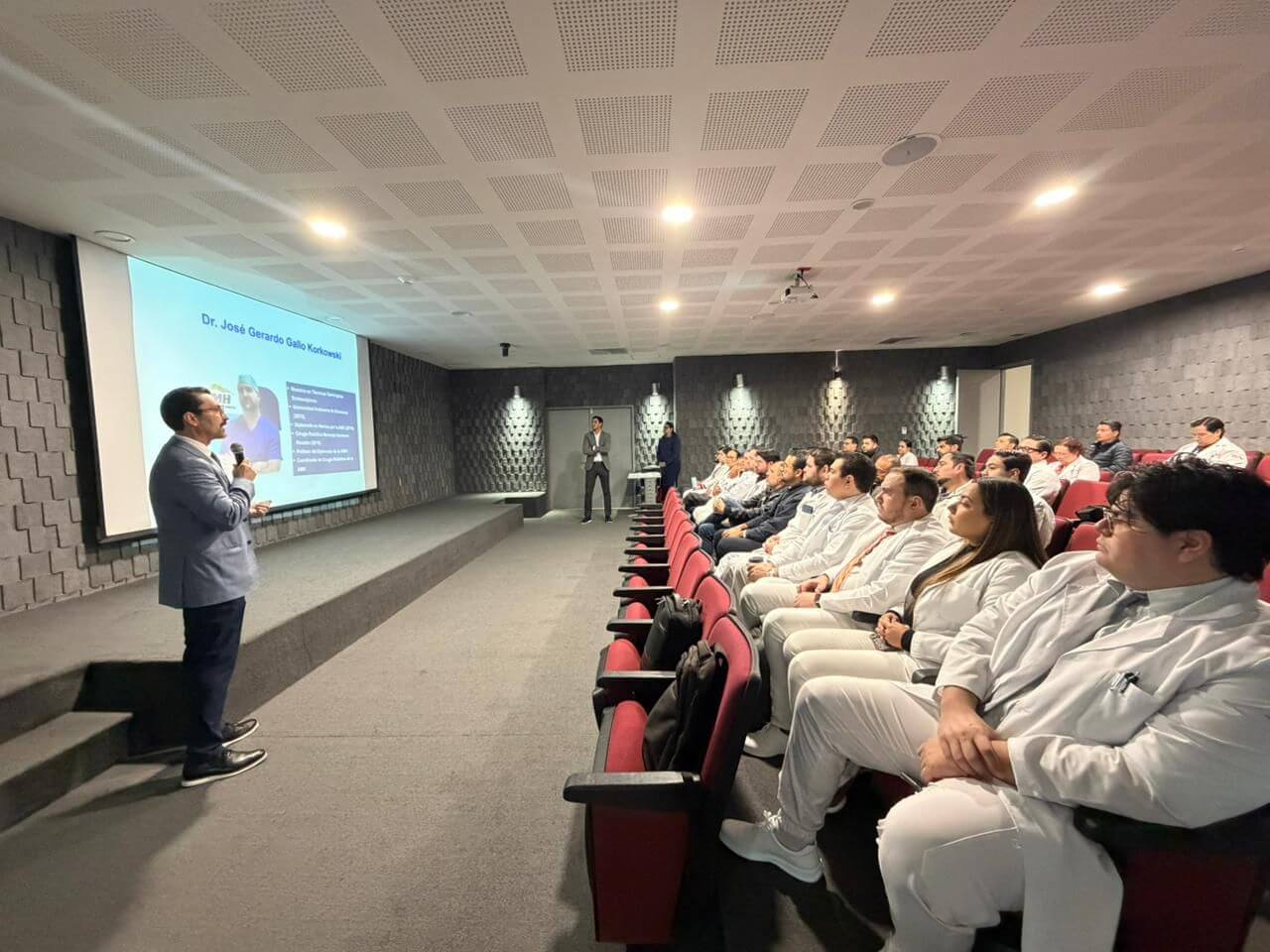 Con más de 80 asistentes tanto locales como foráneos de Tepic Nayarit, se dieron cita para tener una jornada académica especifica para la patología de la hernia inguinal, siendo el día jueves lo teórico y el viernes las cirugías de demostración, siendo tres procedimientos quirúrgicos los cuales se transmitieron en vivo al auditorio del hospital. La cirugía de Lichtenstein estuvo a cargo del Dr. Luis Manuel Garcia Bravo actual presidente de la Asociación Mexicana de Hernia, la cirugía TAPP estuvo a cargo del Dr. Luis Alberto Rea Bocanegra secretario general de la mesa directiva, y la cirugía e-TEP a cargo del Dr. José Gerardo Gallo Korkowski coordinador de cirugía robótica, apoyados en el auditorio para preguntas del los alumnos a los profesores durante la cirugía en vivo a cargo del Dr. Rogelio Oswaldo Sahagún Sanchez, coordinador del congreso internacional.